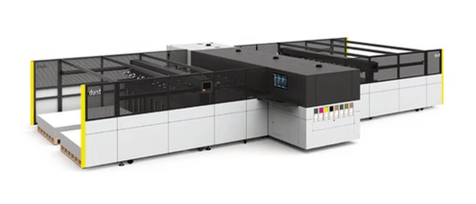 The Durst Automation features a versatile and high-performance solution for seamless unattended boards printing production and extended run times either with a feeding and stacking system or with robotics.