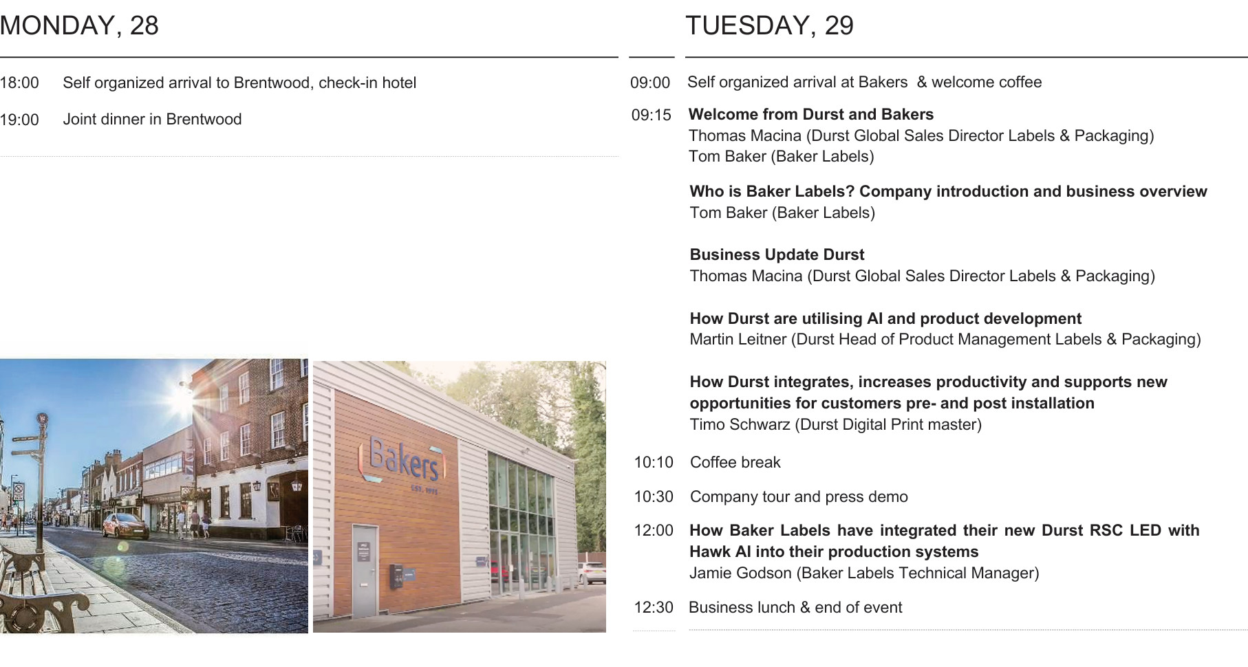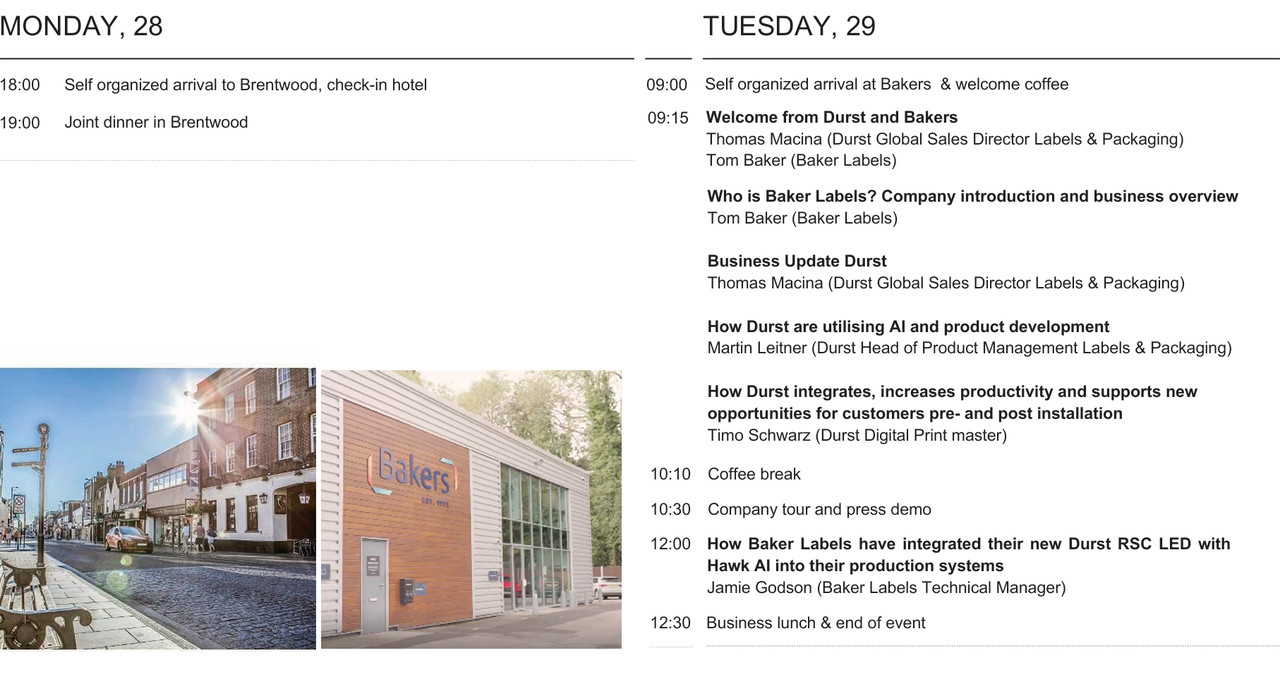 We are pleased to announce the TAU RSC Open House at our customer Bakers in Brentwood, United Kingdom, where we give you the opportunity to explore their production site and experience live the Durst TAU 330 RSC LED printing system.